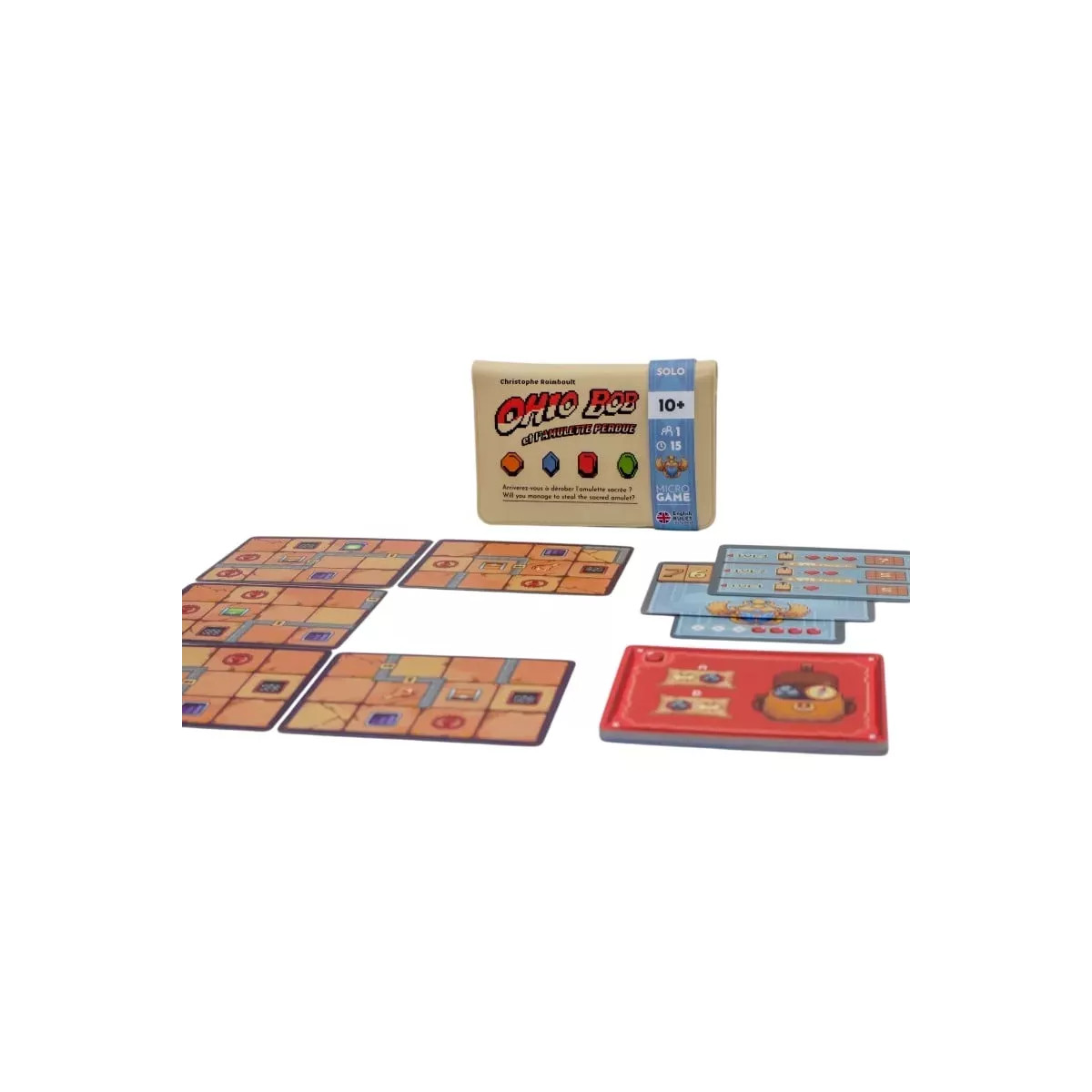 Ohio Bob et l'amulette perdue est un Micro Game d'Exploration et de Dungeon Crawler (sans combat) pour 1 à 2 joueurs (solo ou coopératif), dès 10 ans, avec des parties de 20 minutes. Le joueur incarne Ohio Bob à la recherche de l'amulette Kachapacha, explorant un temple à trois niveaux en gérant ses provisions et en optimisant ses mouvements (type puzzle).